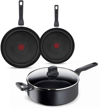Tefal Hard Titanium PRO Pannenset Koekenpan Ø 24/28 cm + Hapjespan Ø 28cm, Alle Warmtebronnen