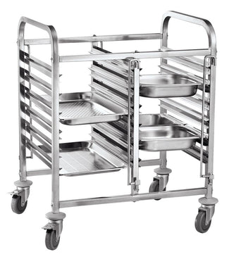Onze regaalwagens variëren m.b.t afmetingen. We bieden een dienbladwagen voor 7 dienbladen, maar ook van 12, 15 en 30 dienbladen. Daarnaast kunnen ook gastronoombakken worden vervoerd.