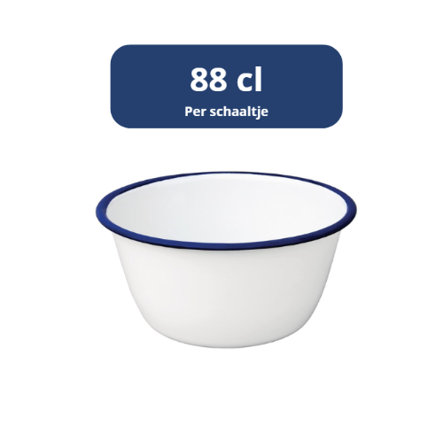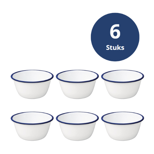 Deze klassieke emaille schaaltjes zijn perfect voor het serveren van desserts, snacks of kleine bijgerechten. Met een royale inhoud van 88cl bieden ze voldoende ruimte voor pudding, fruit of een klein voorgerecht. De wit-blauwe afwerking geeft een tijdloos karakter, terwijl het geëmailleerde staal zorgt voor een stevige en duurzame constructie.